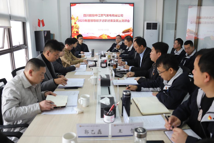 2024年1月9日,電力集團(tuán)黨委副書(shū)記、工會(huì)主席、職工董事、年度考核組第五組組長(zhǎng)成娟帶隊(duì)赴四川能投中江燃?xì)獍l(fā)電有限公司開(kāi)展2023年度領(lǐng)導(dǎo)班子述職述廉及民主測(cè)評(píng)。中江燃?xì)獍l(fā)電公司副董事長(zhǎng)、黨支部副書(shū)記、總經(jīng)理陳仁峰主持會(huì)議。