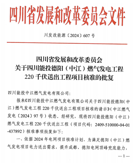 11月29日,中江燃?xì)獍l(fā)電公司迎來重大喜訊,德陽(中江)燃?xì)獍l(fā)電項(xiàng)目220千伏送出線路工程正式獲得四川省發(fā)展和改革委員會(huì)的核準(zhǔn)批復(fù),標(biāo)志著本項(xiàng)目邁出了突破性的關(guān)鍵一步。